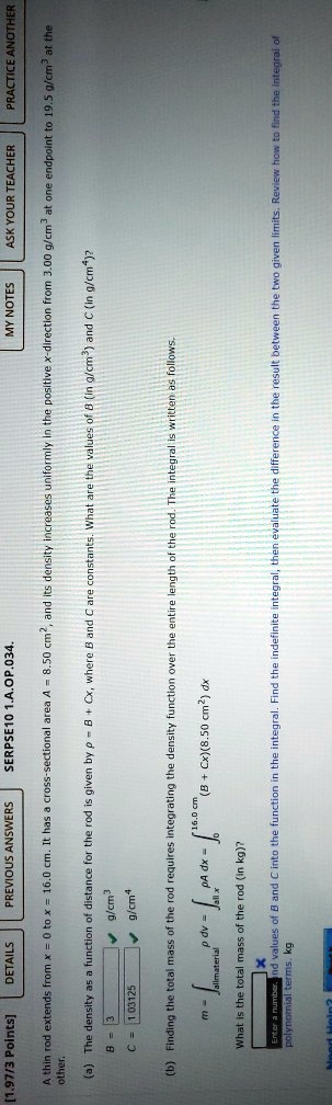 Solved 1 04 Je 1 Ji 3 1 8 My Notes From And A In Cm Drocran L In Cm 1 Diven 3 Dafferense Unitormiy Intedm Densit 2mtne 1 Pe0